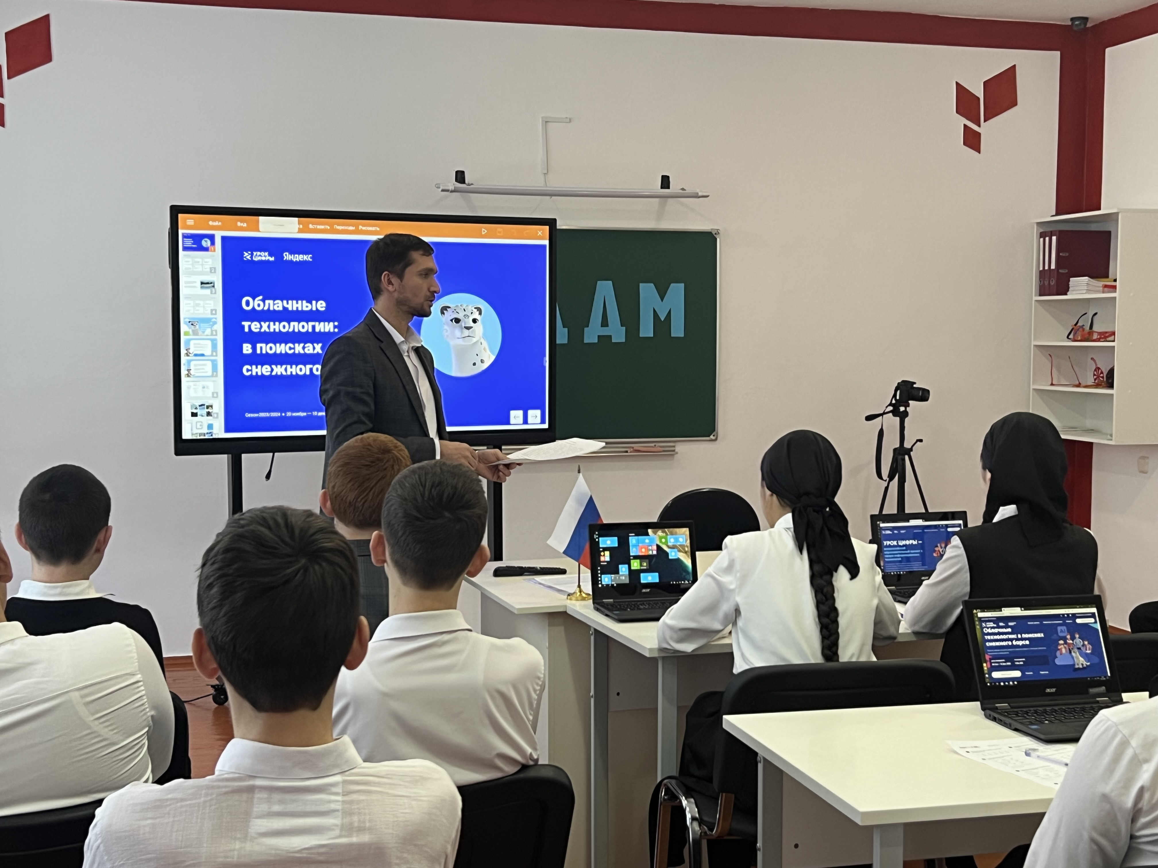 В рамках Всероссийского образовательного проекта «Урок цифры» в школе проходят школьные уроки по теме «Облачный технологии: в поисках снежного барса». 29 ноября 2023 года такой урок прошел в 8 классе В ходе урока обучающиеся узнали о том, что такое облачные технологии и как они работают, а также о преимуществах использования облачных сервисов для хранения и обработки данных. Одним из интересных моментов урока стало выполнение практического задания, в ходе которого ребята искали информацию о редком животном - Снежном Барсе.