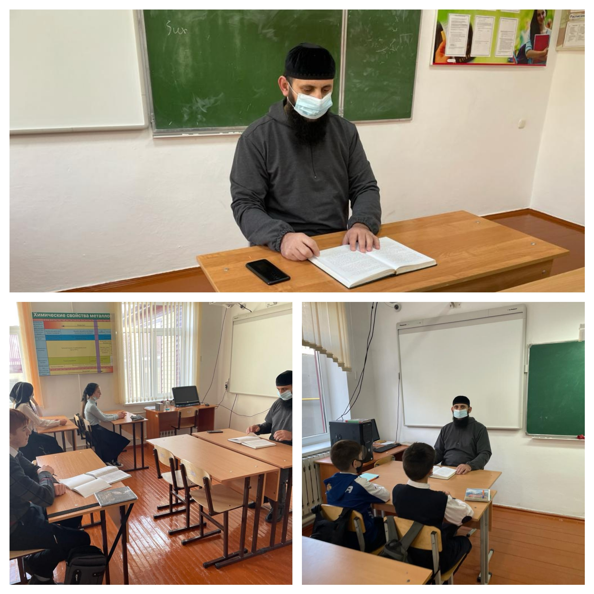 Имам села Даттах Абдурахман (Джанбек Гиргиев) проводит с учащимися школы беседы в рамках исполнения плана мероприятий по реализации концепции духовно-нравственного воспитания.