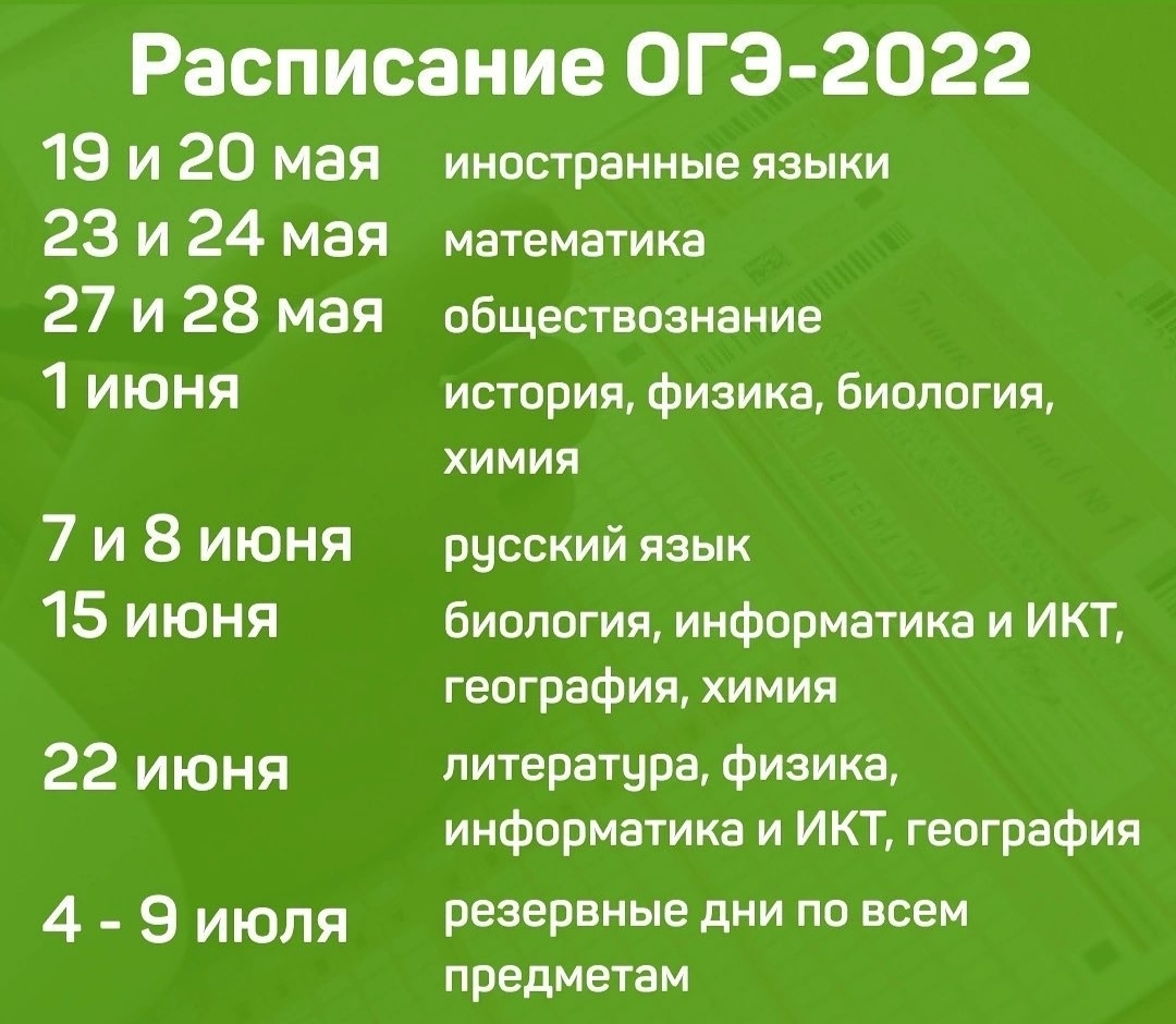 С 4 июля по 9 июля в расписании предусмотрены резервные дни для сдачи ОГЭ по всем предметам.