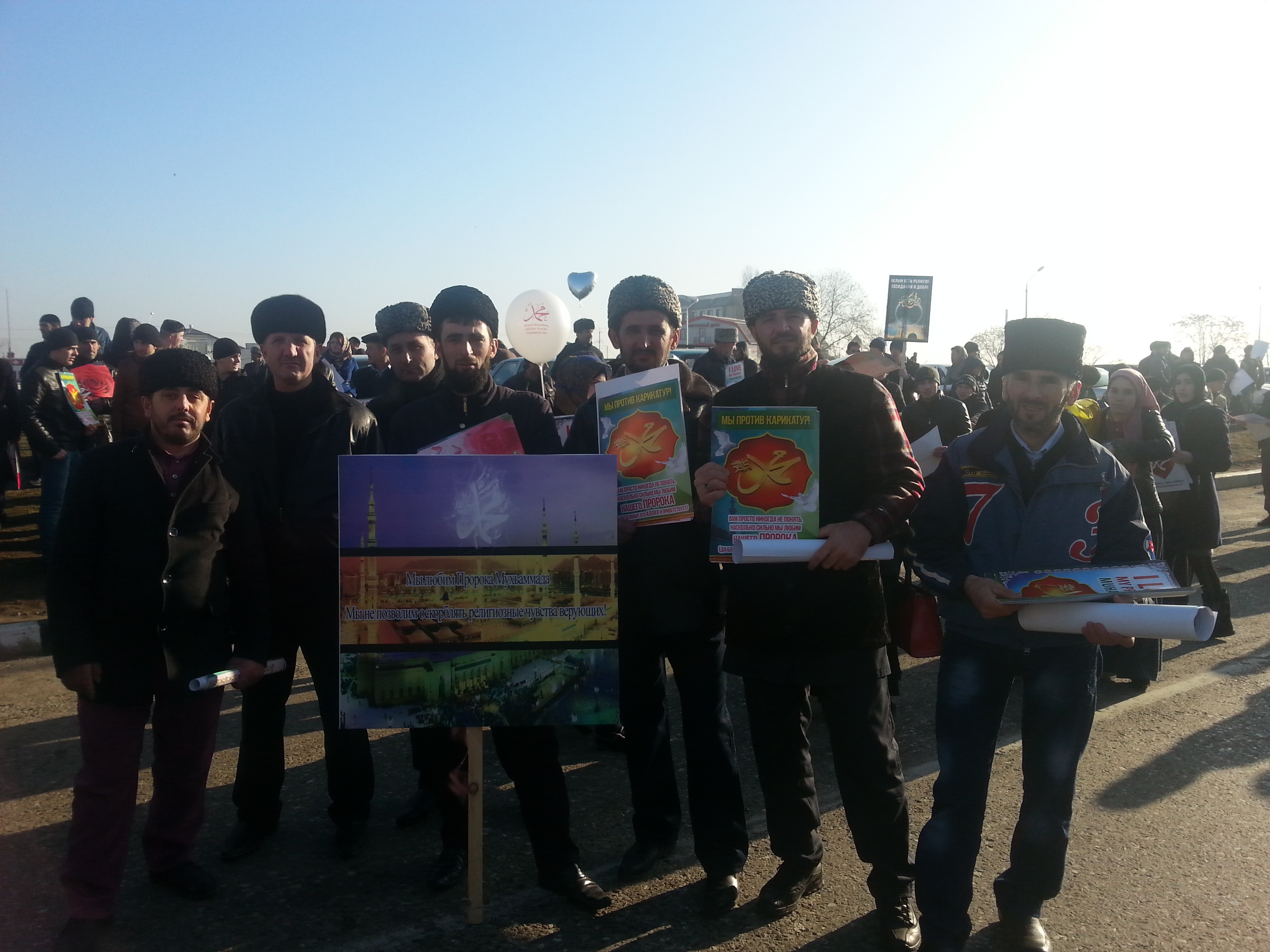 19.01.2015В понедельник, 19 января, в Грозном состоялся митинг «Любовь к пророку Мухаммеду» против карикатур на пророка Мухаммеда (да благословит его Аллах и приветствует).