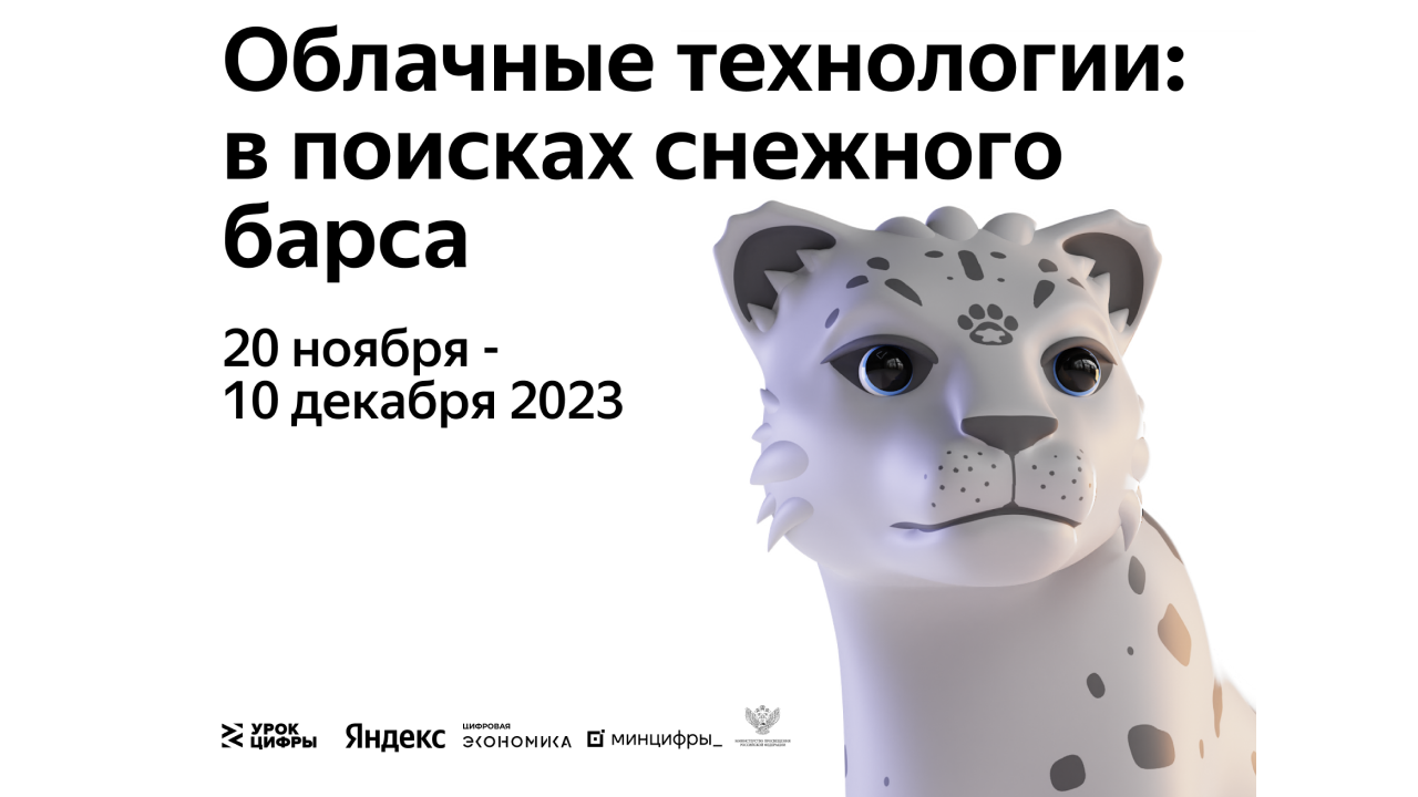 С 20 ноября по 10 декабря Яндекс проведет занятия в рамках всероссийского образовательного проекта «Урок цифры», реализуемого АНО «Цифровая экономика», Минцифры России, Минпросвещения России в партнерстве с ключевыми ИТ компаниями и организациями в поддержку федерального проекта «Кадры для цифровой экономики» национального проекта «Цифровая экономика». Тема урока в этом году — «Облачные технологии: в поисках снежного барса».