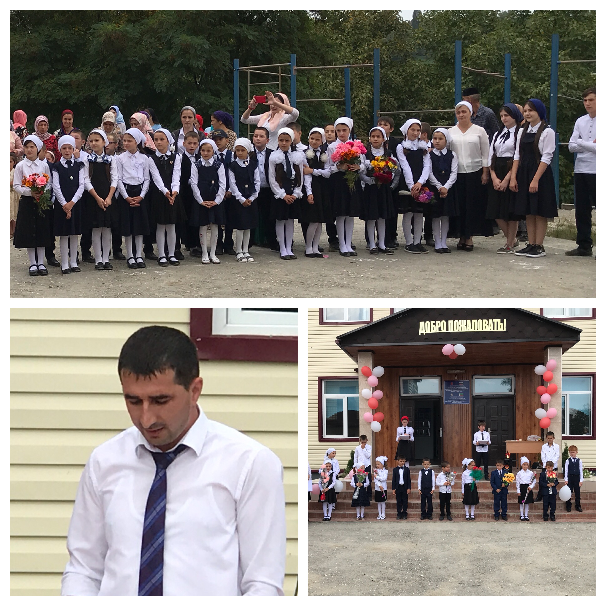 1 сентября! Праздничная линейка в школьном дворе.